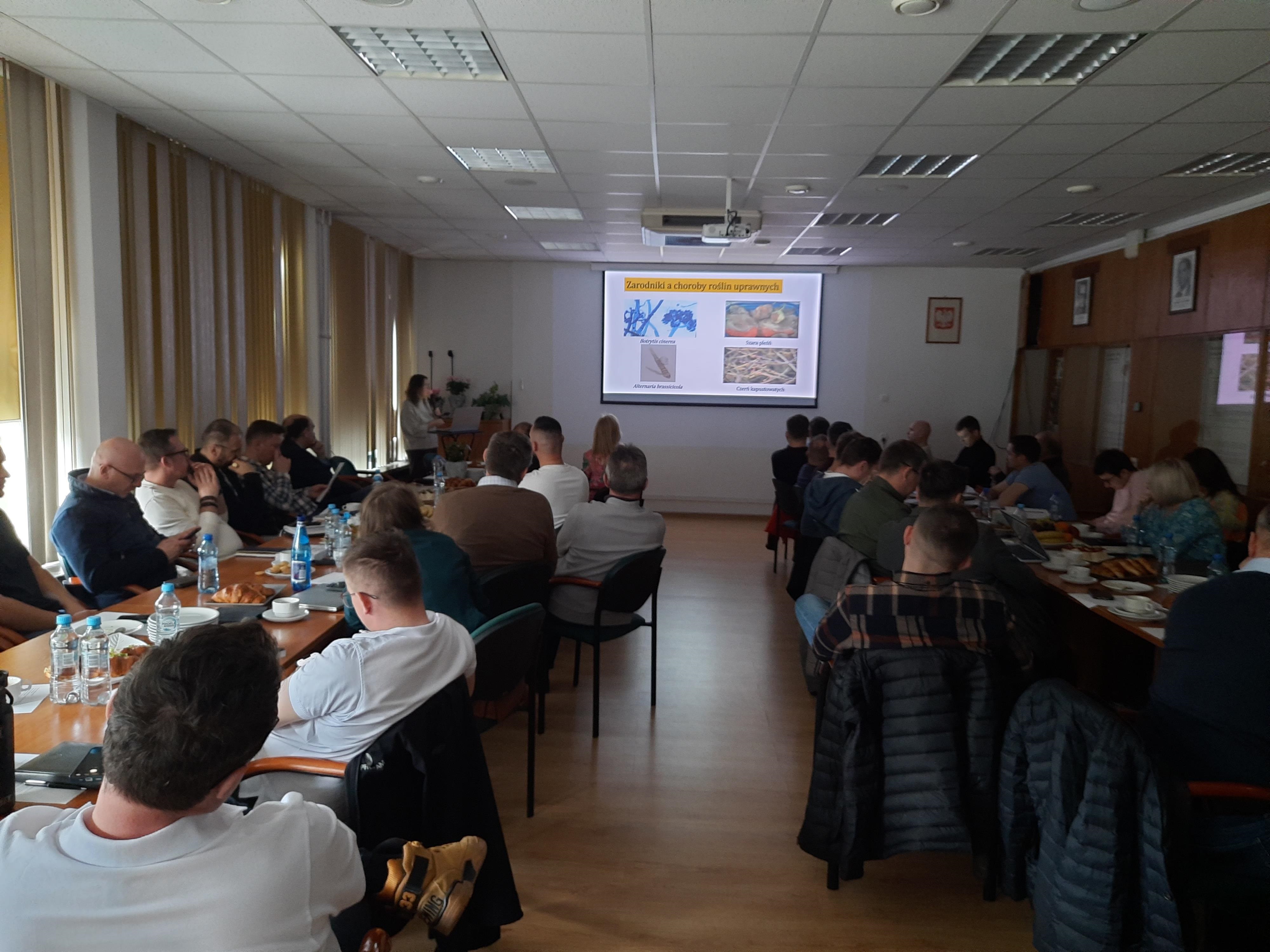 On 17 March 2026, a training session for specialists from R&D Department and advisors from PROCAM POLSKA (43 participants) was held at the headquarters of the Institute of Plant Genetics, Polish Academy of Sciences. The participants of the training were warmly welcomed by Prof. Paweł Krajewski, the Director of the Institute and Karolina Felczak-Konarska, M.Sc. ‒ the Research & Development Director of PROCAM POLSKA. During the training, the scope of research conducted at the Institute was presented by Prof. Arkadiusz Kosmala ‒ the Deputy Director for Scientific Affairs, along with a series of expert lectures. Prof. A. Kosmala discussed issues related to the mechanisms underlying plant responses to abiotic stresses. Prof. Małgorzata Jędryczka presented ways of applying aerobiological methods in plant protection and human health. Dr. Joanna Kaczmarek discussed the operation of a decision-support system for oilseed rape protection based on aerobiological techniques (System for Forecasting Disease Epidemics, SPEC) and outlined the most important other systems developed and recommended in Poland to support the protection of crop plants against diseases. Prof. M. Jędryczka presented information on the new PestSpace application being developed just now in the Baltic Sea Region; its functionalities, and possibilities for further development. The participants have filled in a questionnaire about their suggestions for the PestSpace app for mobile phones.